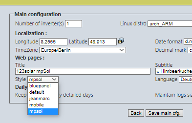 Auf der Konfigurationsseite von 123Solar kann dann der Style entsprechend ausgewählt werden.
